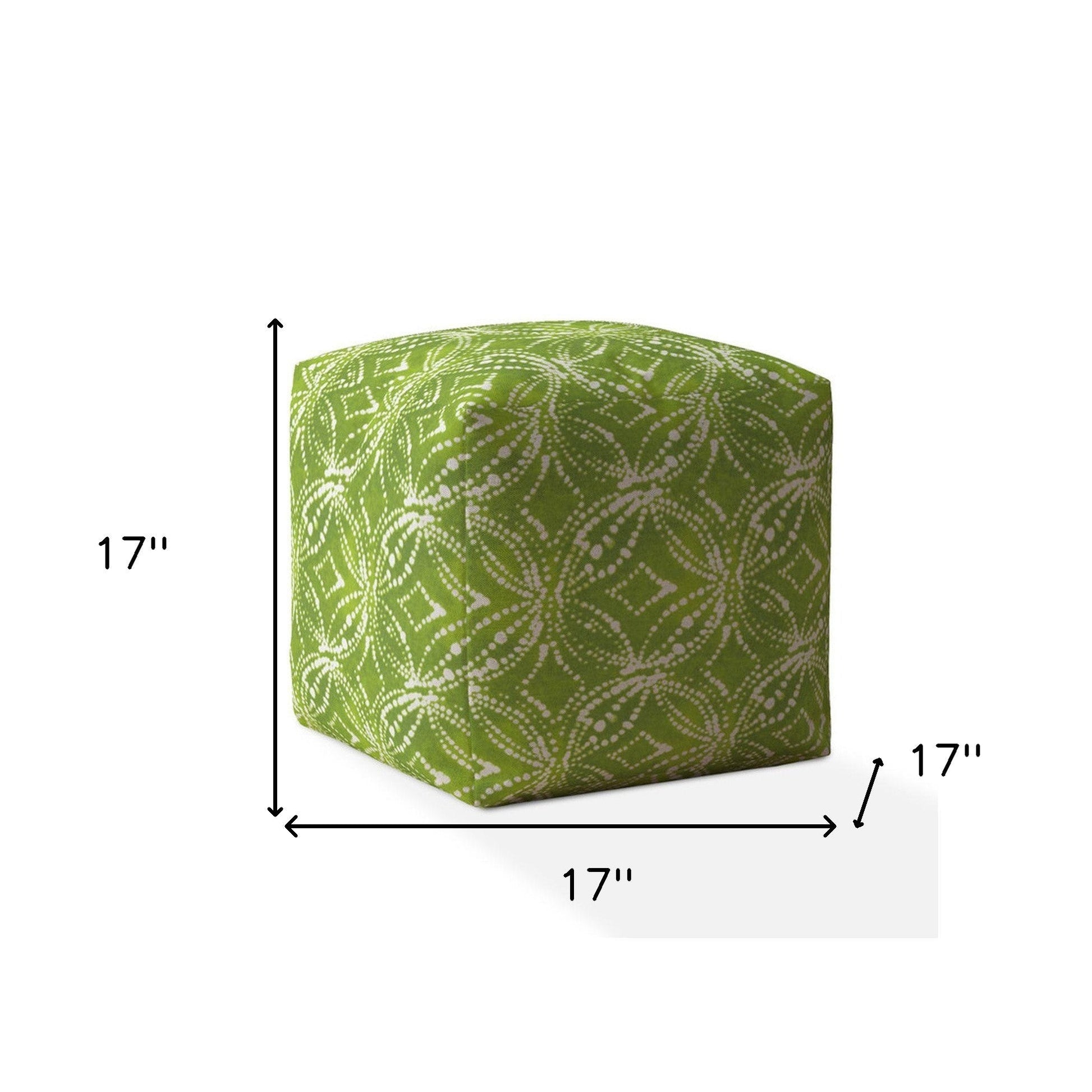 Practicality and fashion mix together with this handy 17" green and white cotton damask pouf cover. Expertly upholstered with padding and soft cotton in a damask pattern, this ottoman is as comfortable as it is good looking. Easy to blend into most any room, a ottoman is a way to add a good looking accent to your space that can also be practical and useful. . 17" H x 17" W x 1" D