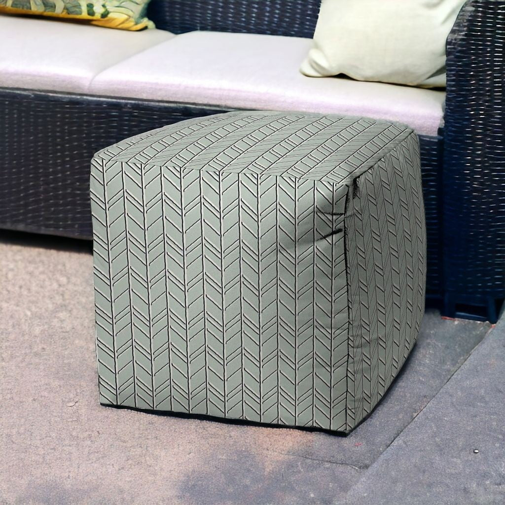 This 17" green cube geometric indoor outdoor pouf cover is a great accessory to help finish off and accent your outdoor oasis. Easy to blend into most any room, an ottoman is a way to add a good-looking accent to your space that can also be practical and useful. . 17" H x 17" W x 1" D