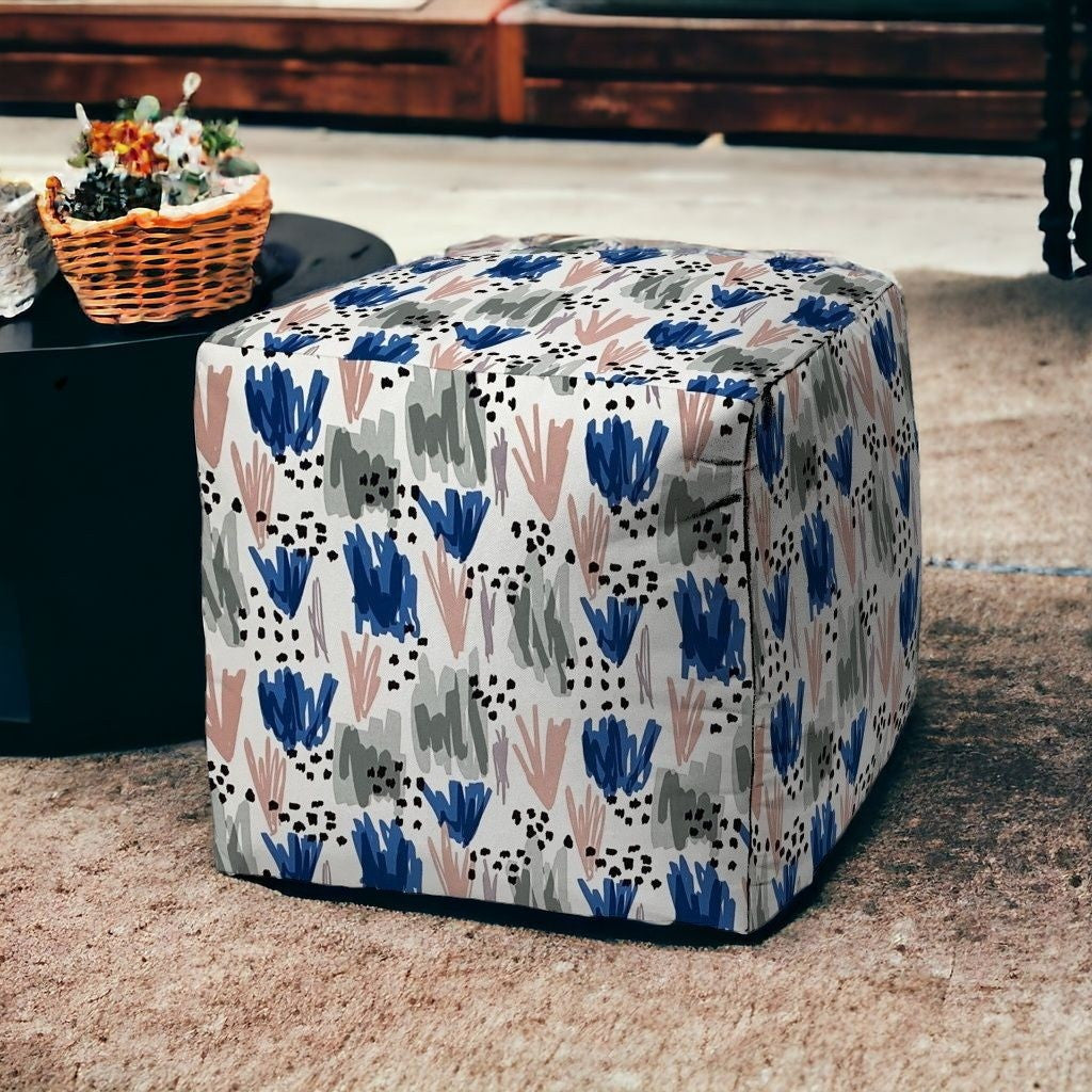 This 17" pink and white cube geometric indoor outdoor pouf cover is a great accessory to help finish off and accent your outdoor oasis. Easy to blend into most any room, an ottoman is a way to add a good-looking accent to your space that can also be practical and useful. . 17" H x 17" W x 1" D
