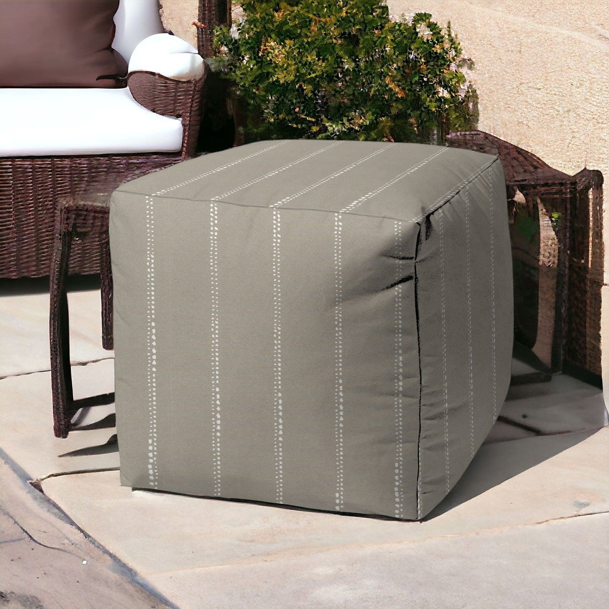 This 17" taupe cube striped indoor outdoor pouf cover is a great accessory to help finish off and accent your outdoor oasis. Ottomans are multi-functional additions to your space that add fashion and practical value. 17" H x 17" W x 1" D