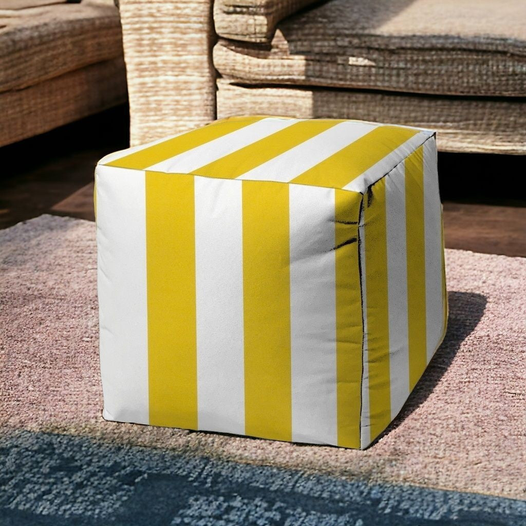 17" Yellow And White Cube Striped Indoor Outdoor Pouf Cover