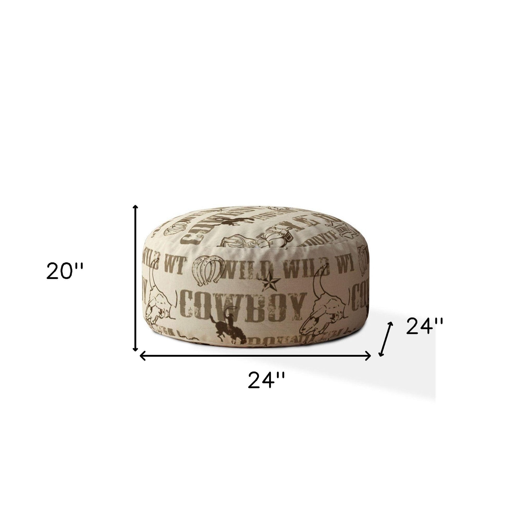 Get ready to relax with this 24" brown cotton round cowboy pouf cover. Expertly upholstered with padding and soft cotton in a cowboy pattern, this ottoman is as comfortable as it is good looking. Ottomans are multi-functional additions to your space that add fashion and practical value. 20" H x 24" W x 1" D