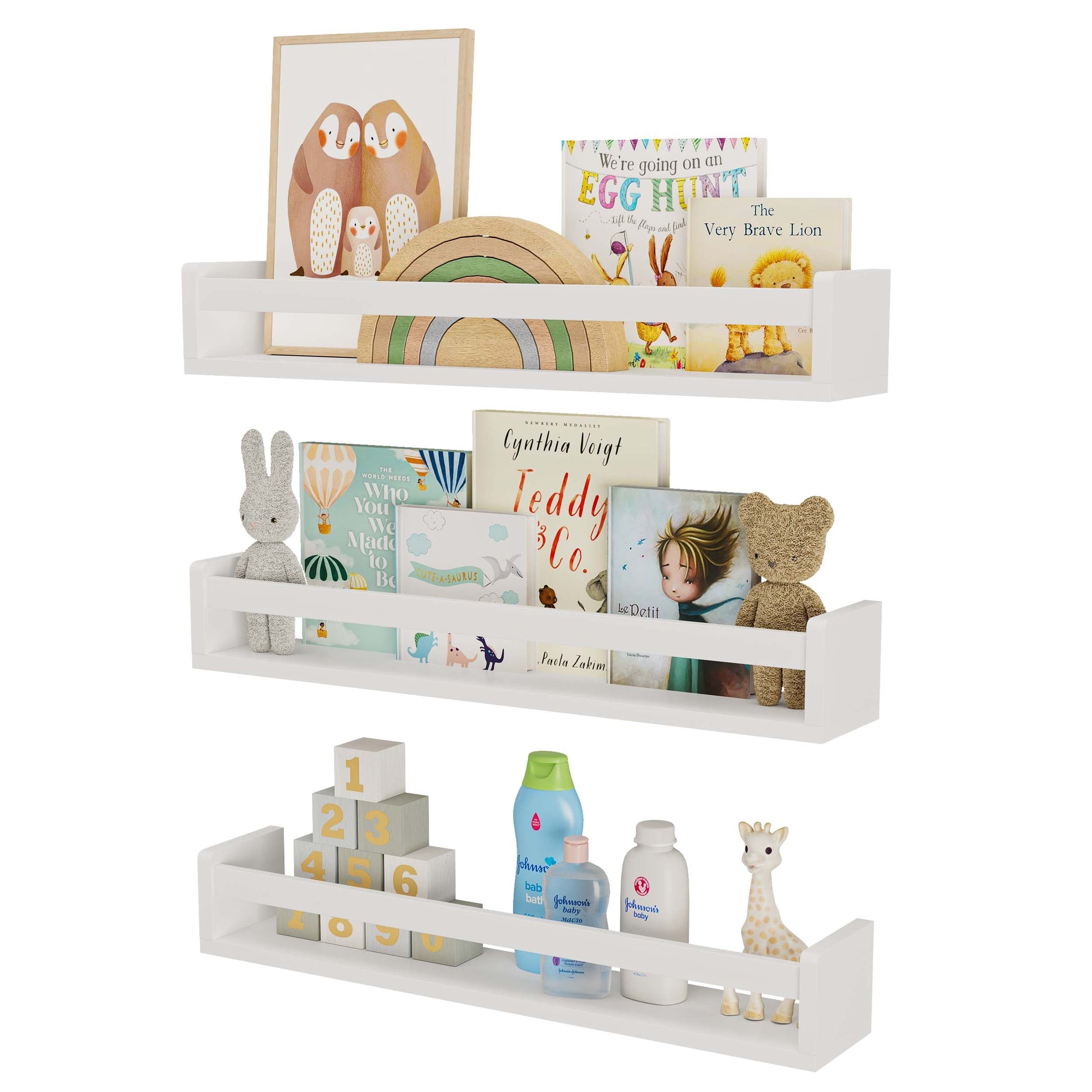 24'' Nursery Book Shelves, Wall Bookshelf for Kids, Wood Floating Shelves for Kids Room - Set of 3 - White