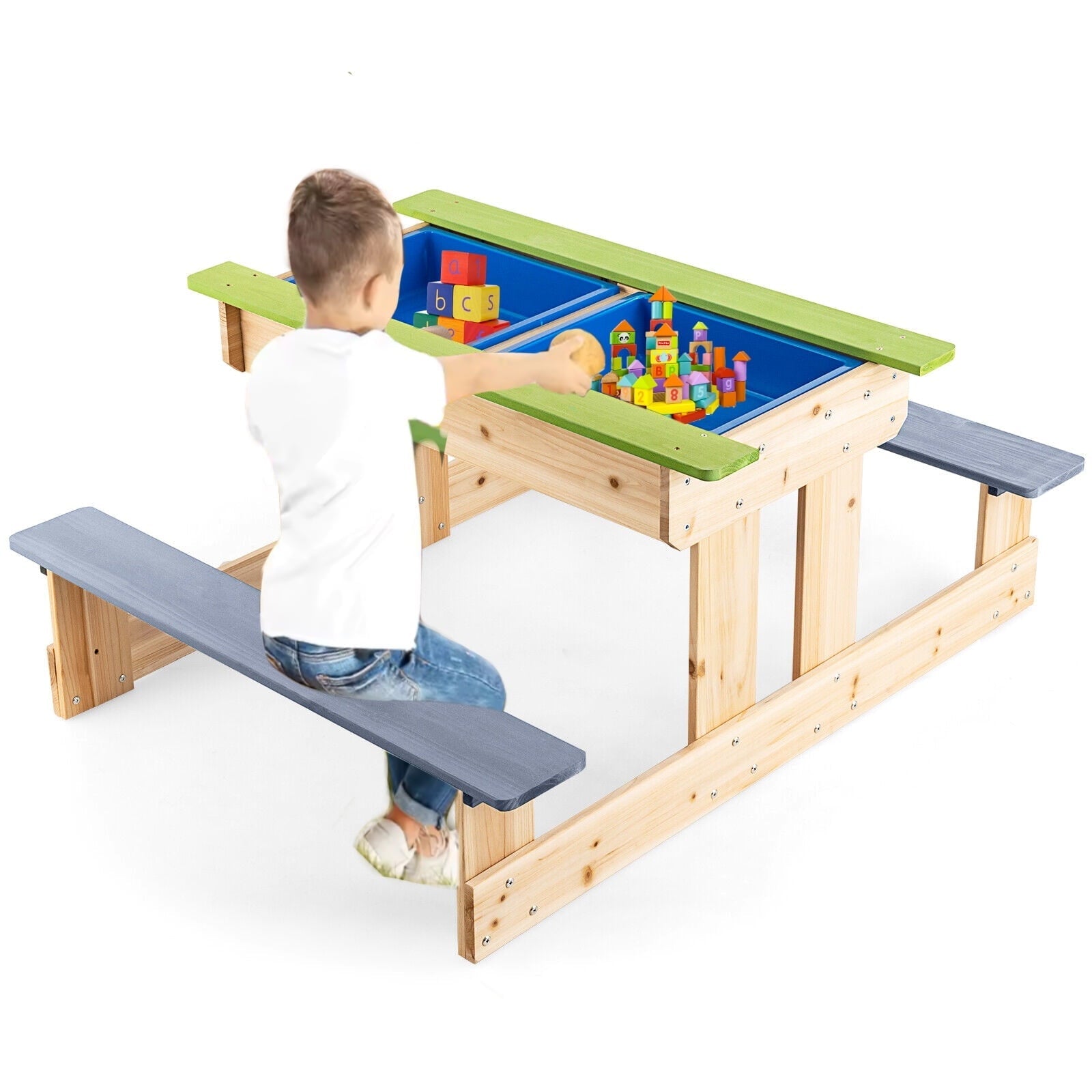 Amijoy 3-in-1 Kids Picnic Table Outdoor Wooden Water Sand Table w/ Play Boxes