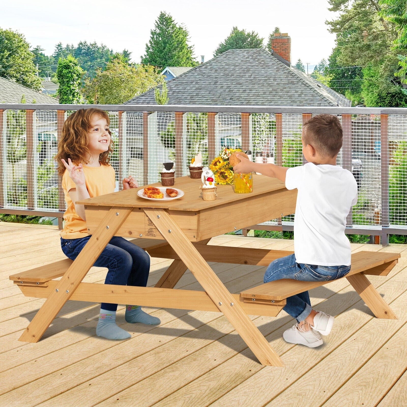 Amijoy 3-in-1 Kids Picnic Table Wooden Outdoor Water Sand Table w/ Play Boxes