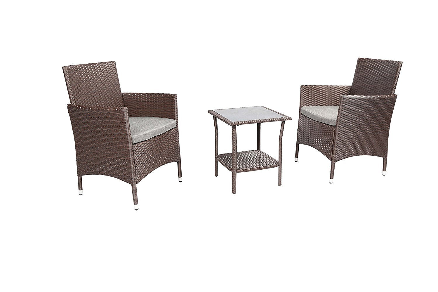 Baner Garden 3Piece Outdoor Furniture Complete Patio Wicker Rattan Conversation Set, (Q16-CH), Chocolate