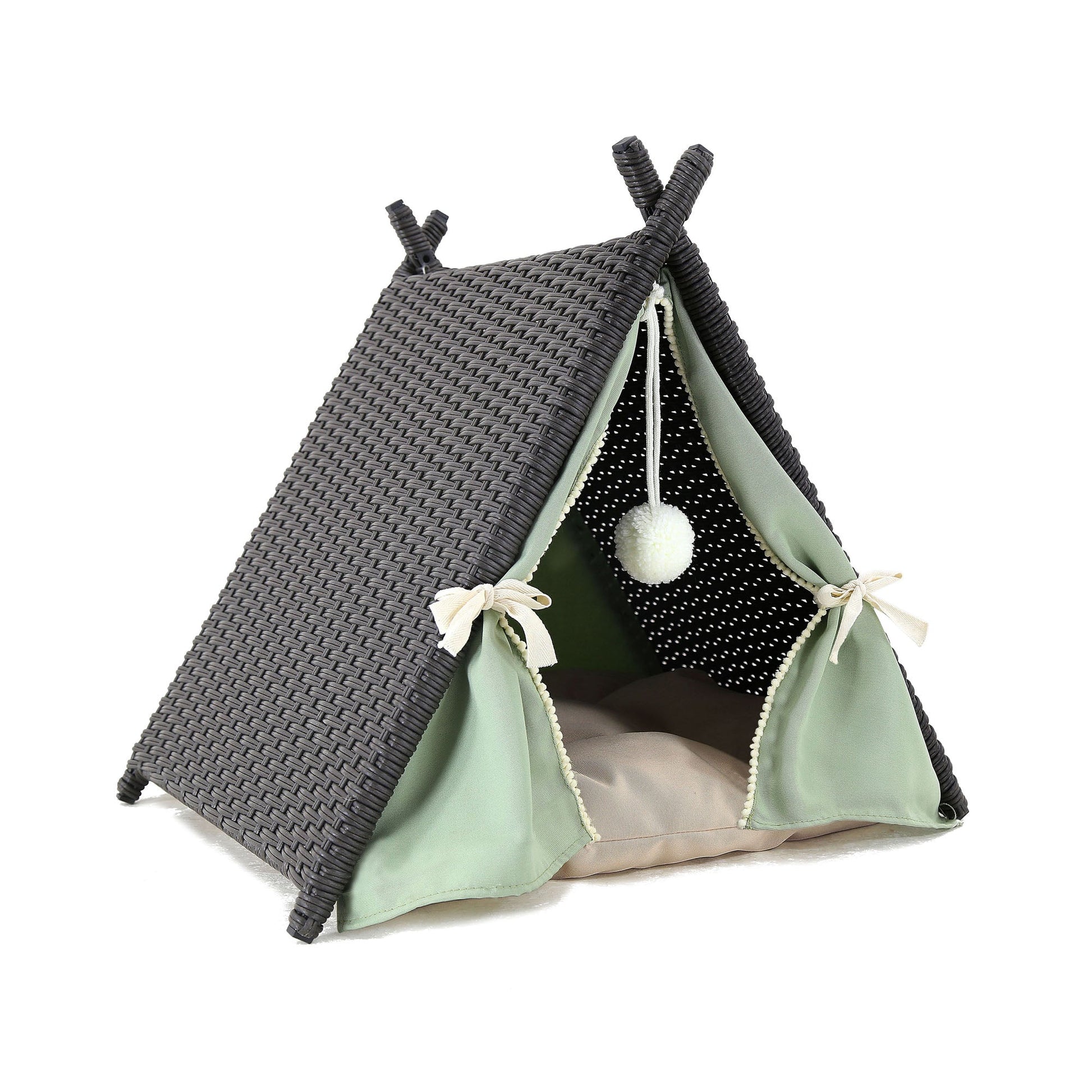 This spacious, multi-cat kitty house is the perfect shelter for any outdoor cat. This Tower Rattan Wicker Portable Tent Cat House with Soft Cushion is perfect for use in barns, garages, sheds, and porches. The waterproof fabric and unique overhang roof design helps keep cats warm and dry and offers a comforting shelter that is large enough for up to four kitties. They can’t think of anything more comforting to an outdoor cat. A place to call home.