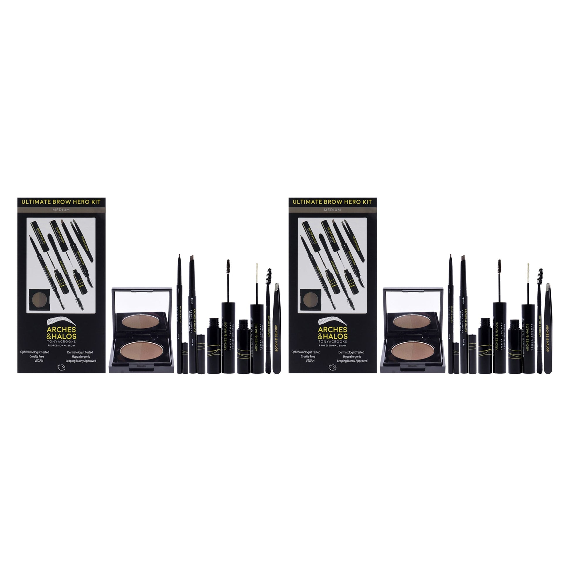 Ultimate Brow Hero Kit - Medium - Pack of 2 by Arches and Halos for Women - 7 Pc Surgical Stainless Steel Brow Tweezers, Angled Brow Shading Pencil, Micro Defining Brow Pencil, Duo Luxury Brow Powder, Dual Ended Blending Brush, Water Resistant Microfiber Tinting Mousse, Natural Hold Brow Gel