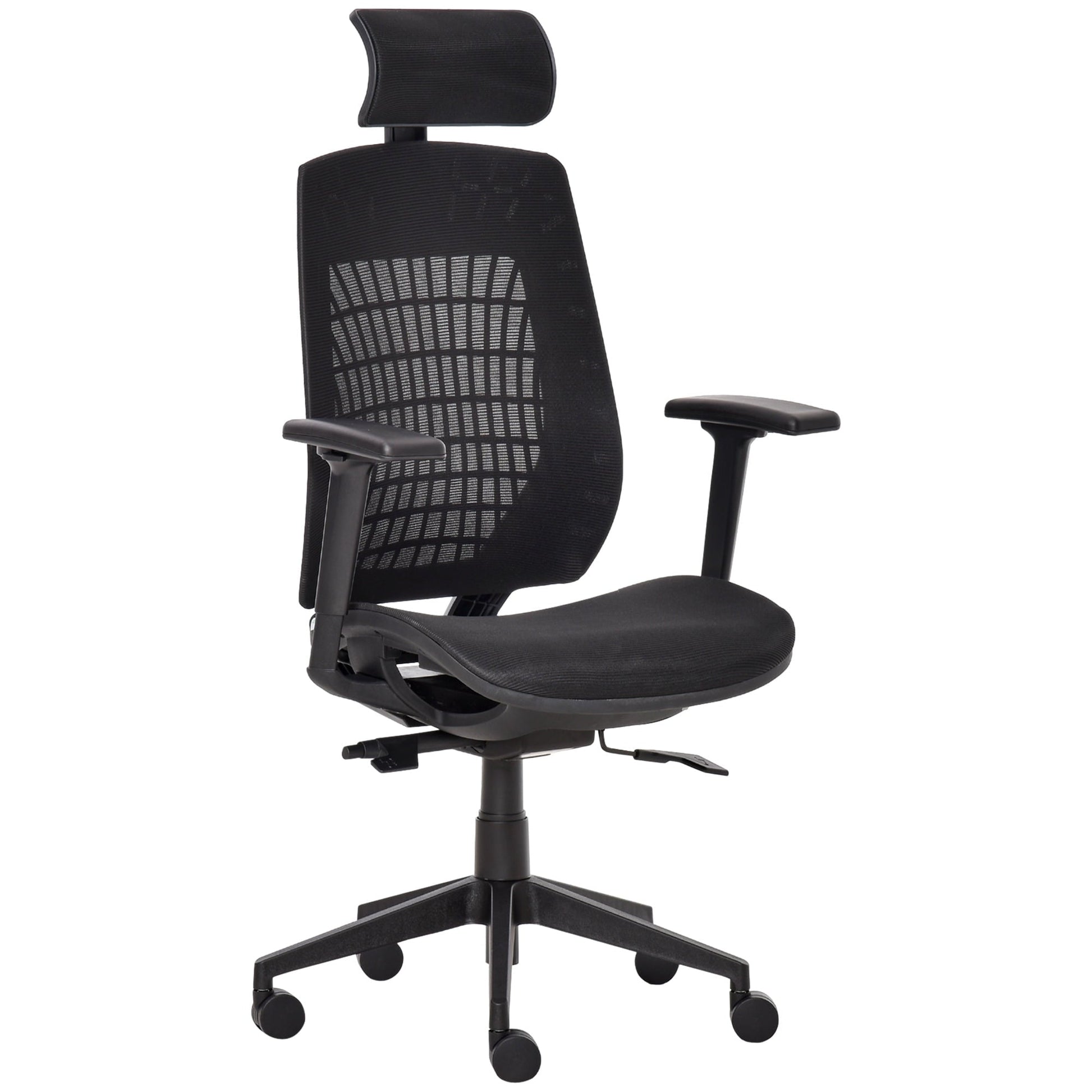 Long hours at the computer don't have to mean discomfort. Vinsetto offers an ergonomic office chair with a high back, plush seat, headrest, and armrest that all fit the curve of your spine. This chair's mesh back is breathable, and it's cushioned underneath. Recline and lock it in place; it offers an array of adjustable features to fine-tailor it to your body. Whether you're gaming, working from home, or anything else, this office chair makes time at the computer ergonomic. Color: Black Materials: Foam, Mesh Fabric (Polyester), Polypropylene, Nylon Overall Dimensions: 26.5' W x 25.25' D x 46.5' - 49.5' H Seat Dimensions: 19.75' W x 17' D x 19' - 22' H Armrest Size: 3.5' W x 9.75' D x 7.5' - 10.25' H Headrest Dimensions: 11.5' W x 5.75' D Max Load: 275 lbs. Item Label: 921-431